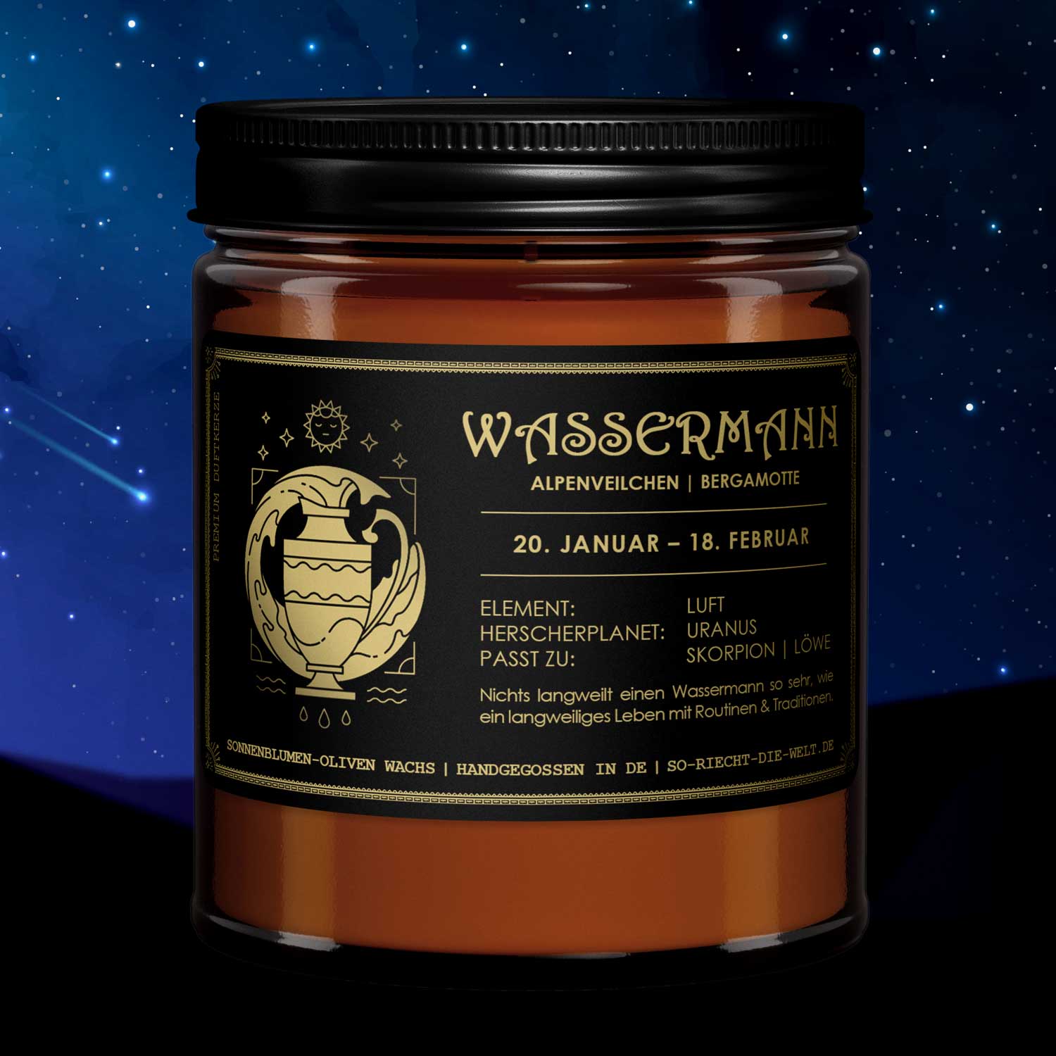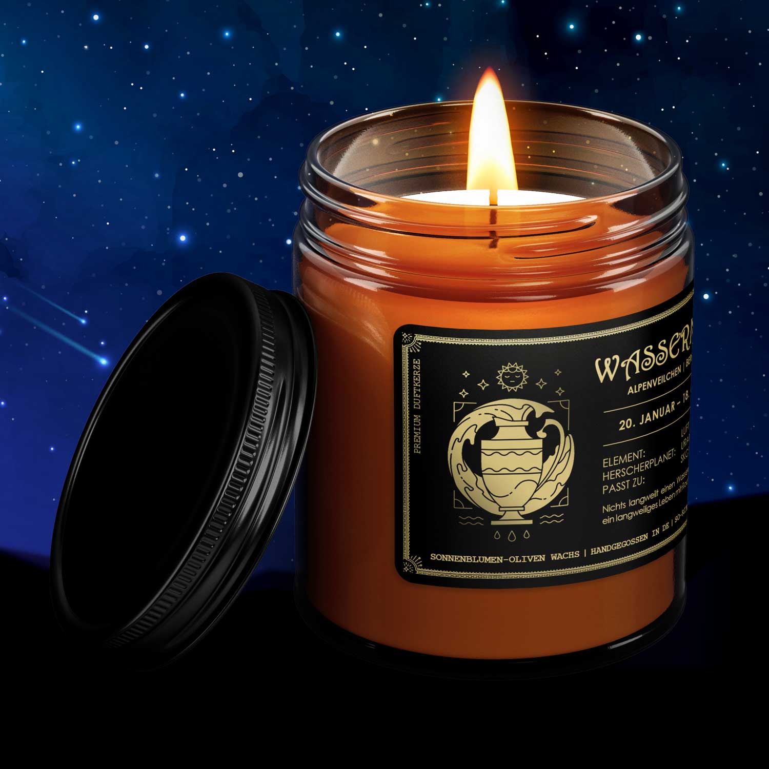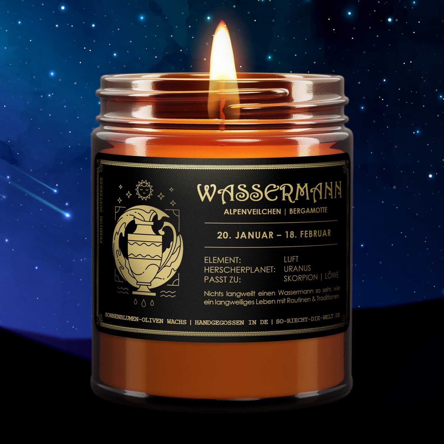 Wassermann Sternzeichen Kerze - Alpenveilchen | Bergamotte